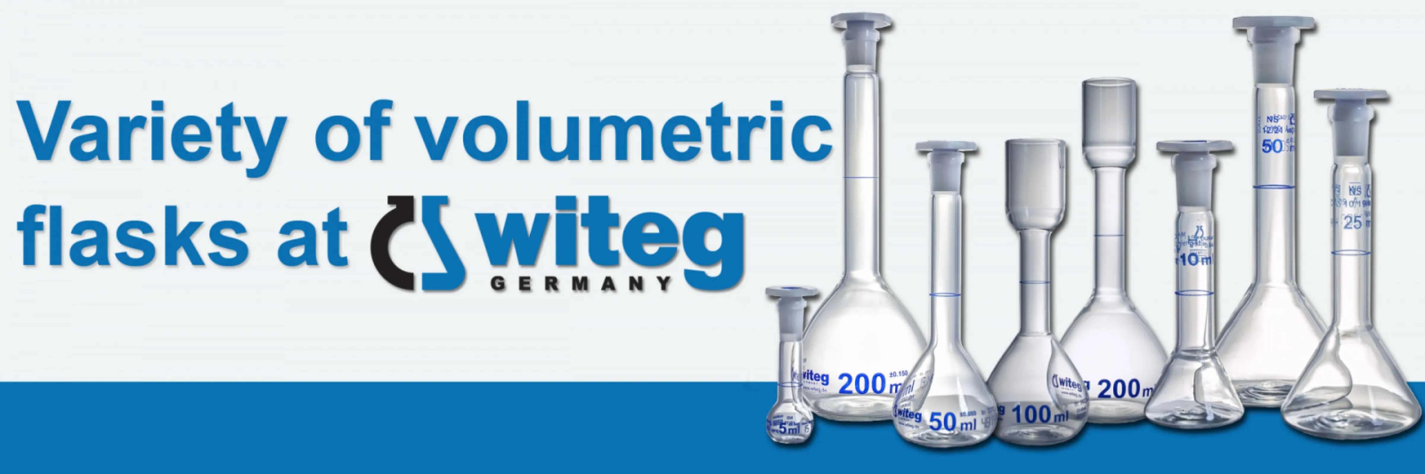 Variety of volumetric flasks at witeg