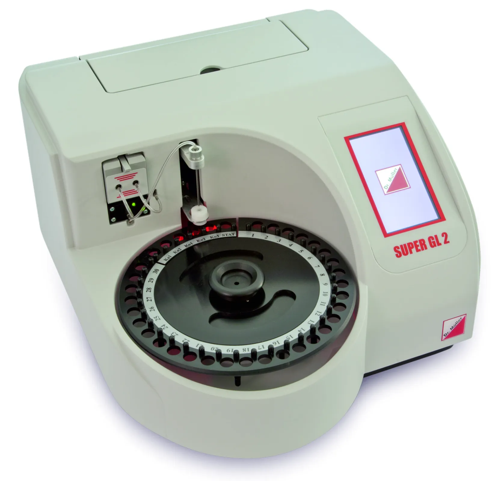 It is an electrochemical analyser for laboratory testing of glucose and lactate. Glucose results can be shown as plasma referenced glucose values. The sample rotor for 30 samples and by using innovative techniques the device measures samples fast. By choosing the needed sensor it is possible to decide which parameter the device should measure: glucose and lactate or glucose only. By the help of a special glucose sensor the device checks the glucose value for the effect of disturbing substances.